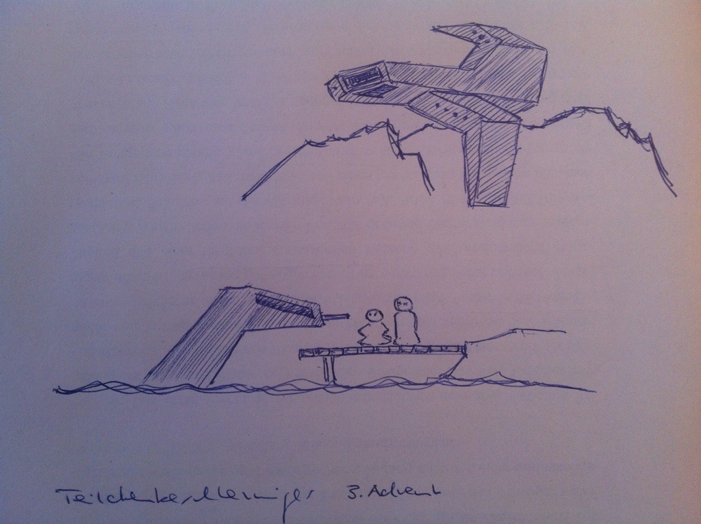Heute Nacht habe ich einen 3D Kino würdigen Traum geträumt: Eine Staffel asymmetrischer, kubistischer, fliegender Kampfmaschinen legen vor den staunenden Touristen auf dem Ausflugsschiff halb Manhatten in Schutt und Asche. Man ahnt, es geht hier um eine Machtdemonstration, eine eventuelle Verunsicherung ist unbeabsichtigt.